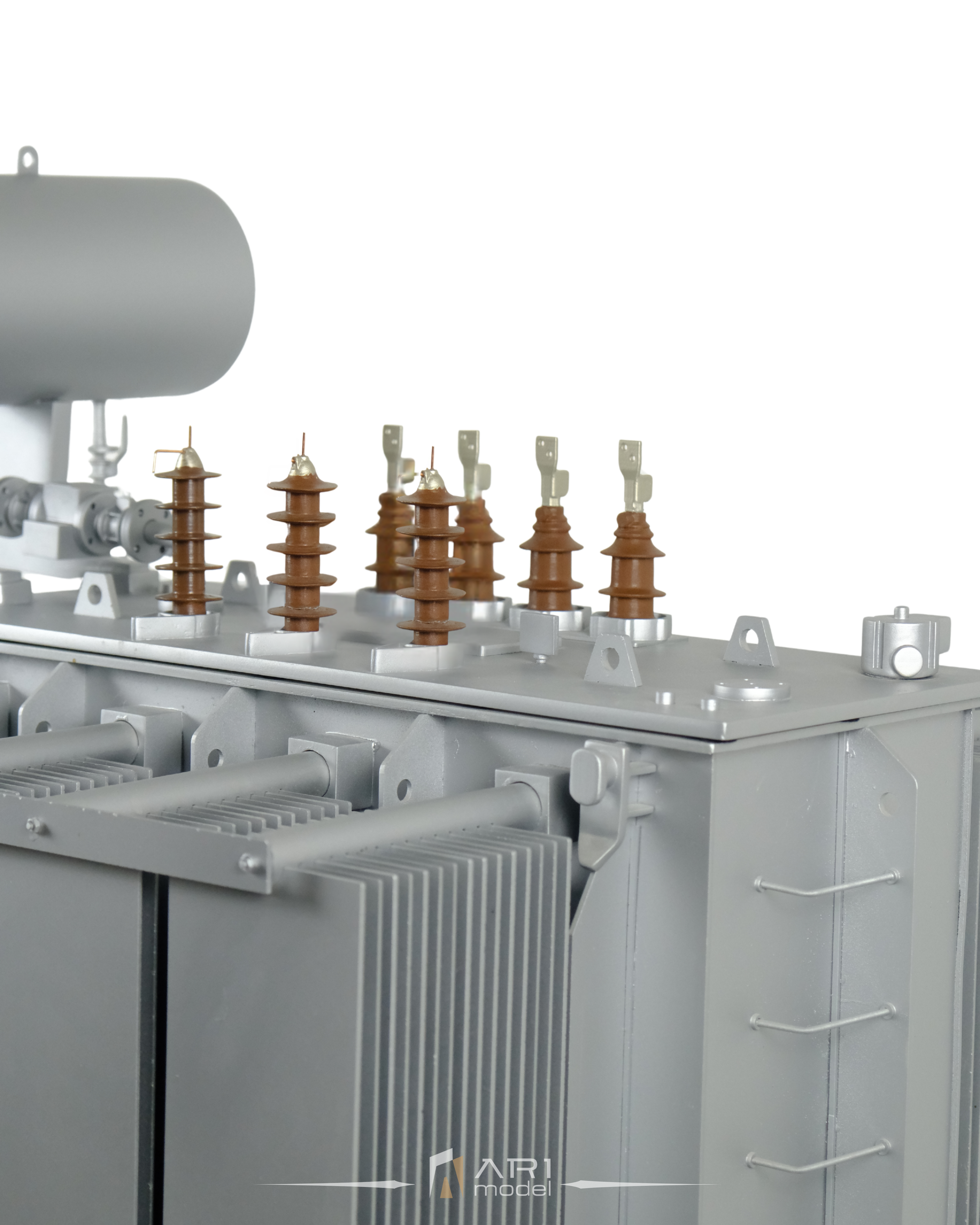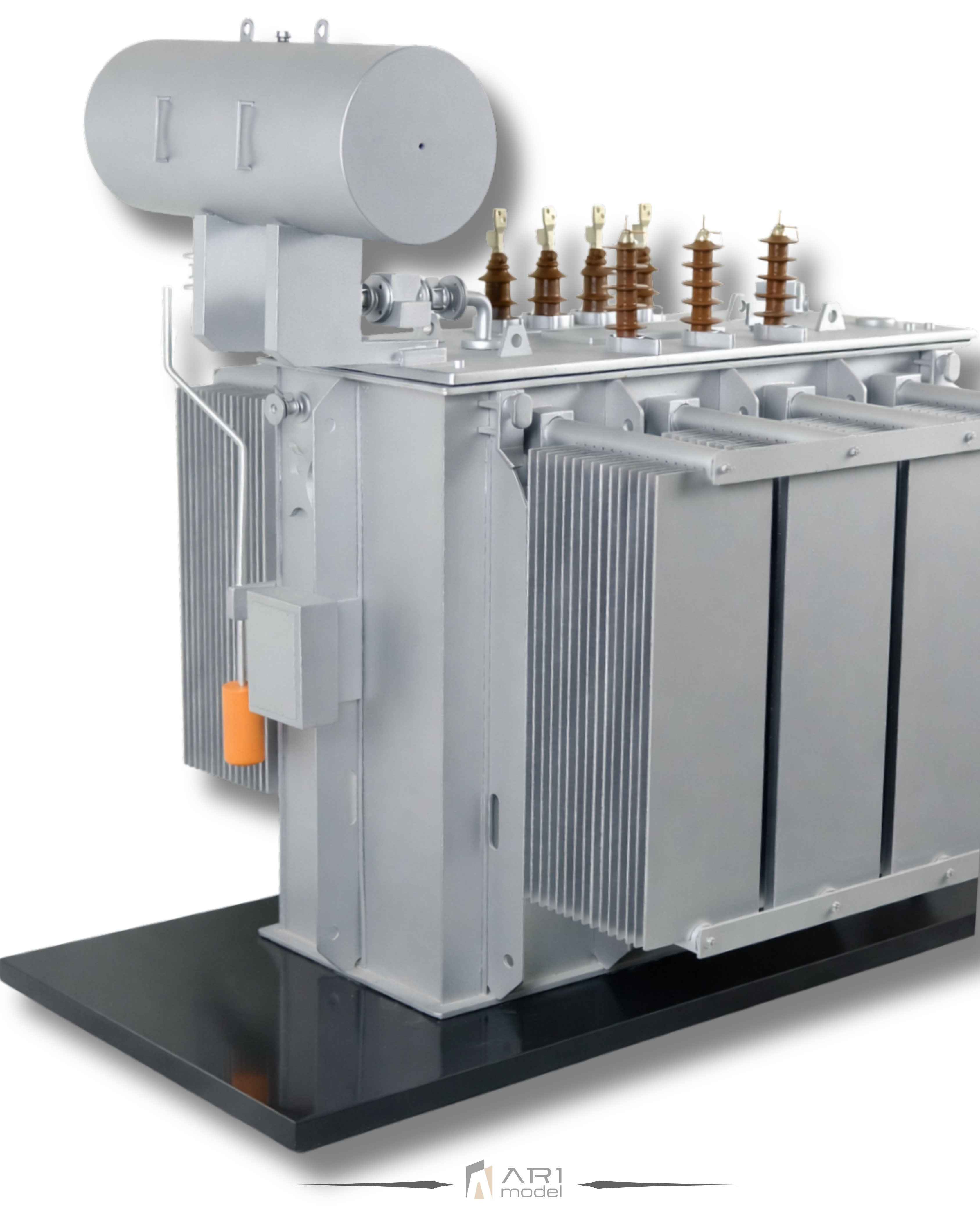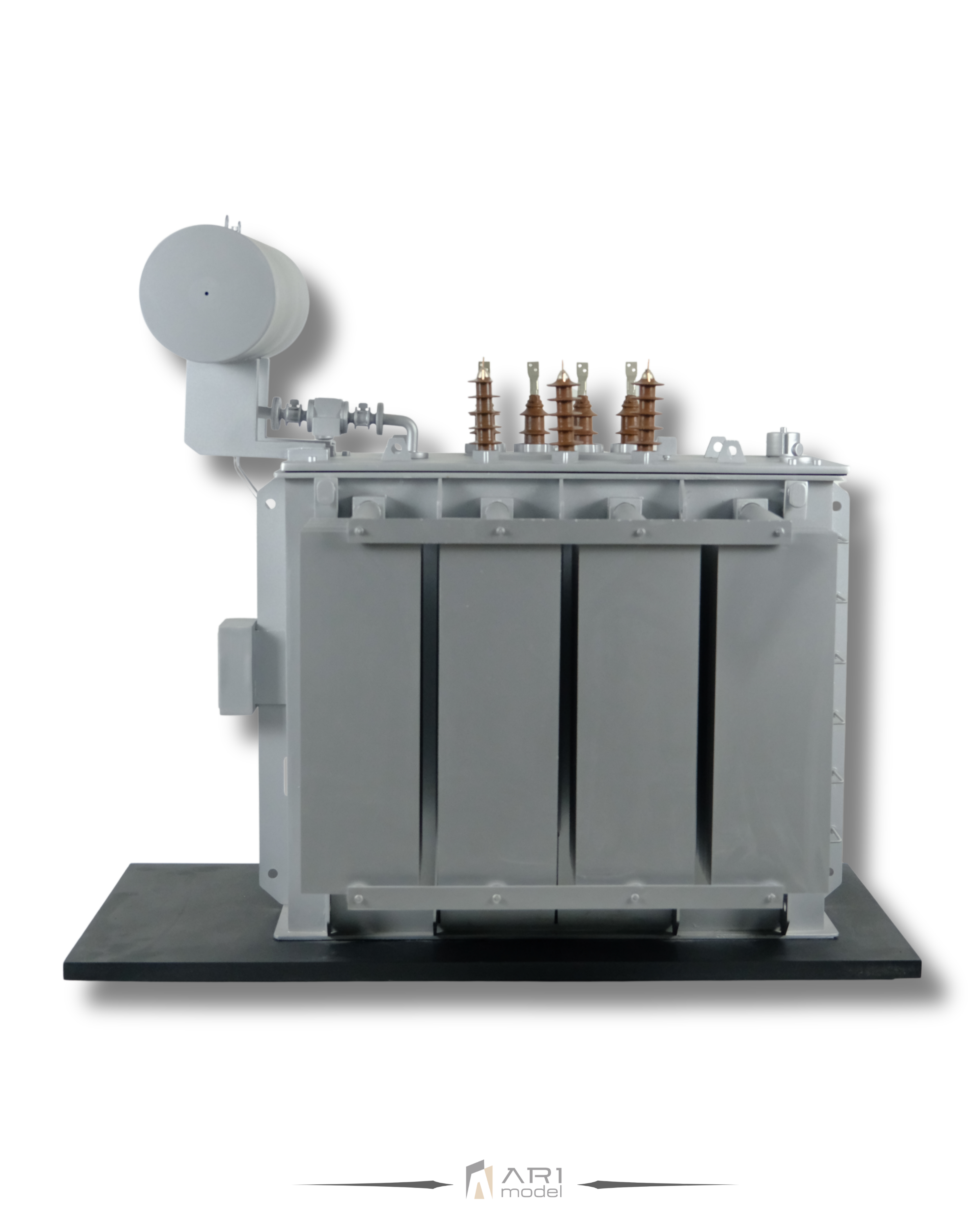 Jede Komponente des von ARI Maquette entwickelten Transformatormodells basiert auf realen technischen Referenzen. Von Kühlpaneelen und Durchführungen bis hin zu den strukturellen Proportionen spiegelt jedes Detail die Logik des Industriedesigns wider. Saubere Oberflächen, exakte Geometrie und ausgewogene Proportionen gewährleisten Realismus und ästhetische Klarheit.