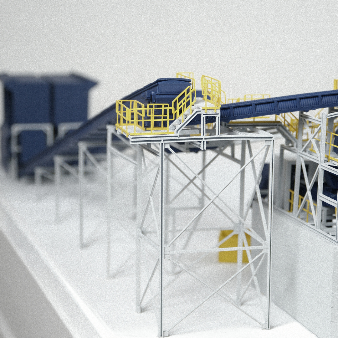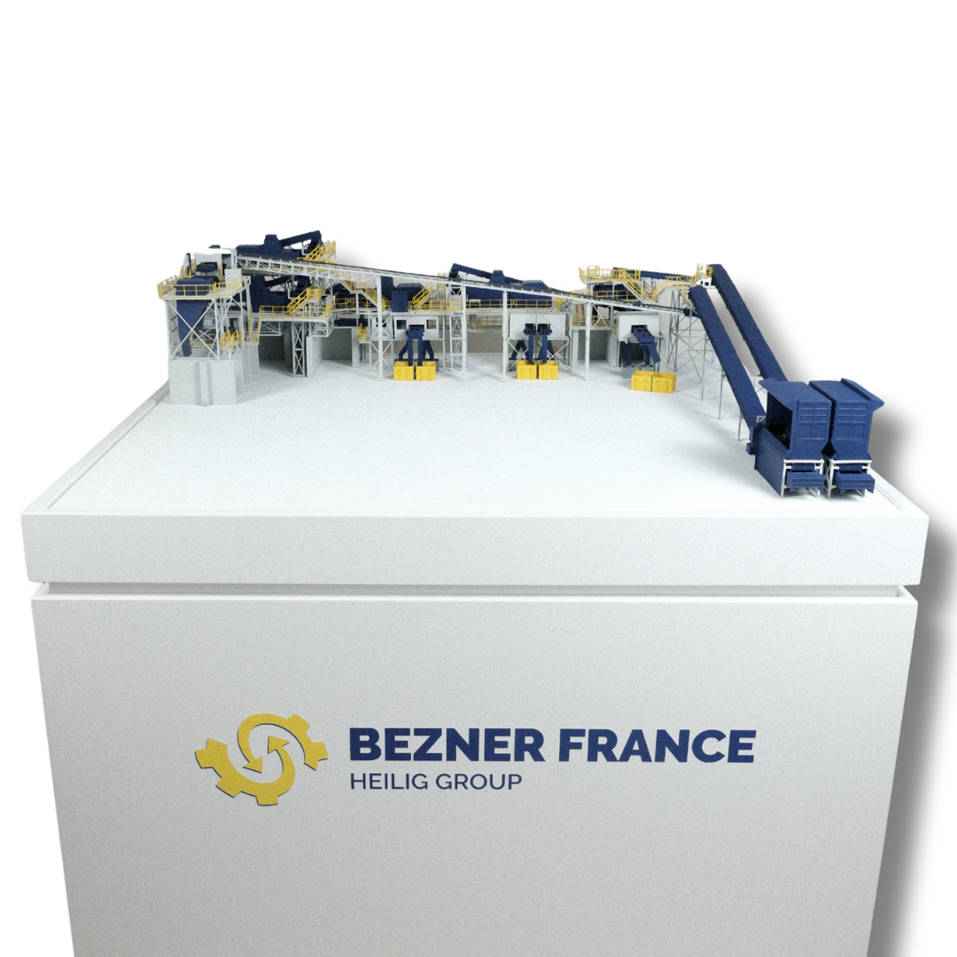 Neben seiner visuellen Wirkung zeichnet sich dieses Industriemodell auch als lehrreiches und informatives Instrument aus, das komplexe Abfallbehandlungsprozesse vereinfacht darstellt und so die umweltfreundlichen technologischen Lösungen von Bezner France greifbar macht.